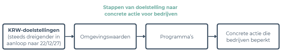 Door naar concrete gevolgen voor ondernemingen Richting 2027 wordt de druk op overheden opgevoerd om te voldoen aan de KRW. Er wordt volgens een kamerbrief van 18 juli 2025[8] alles op alles gezet om de waterkwaliteit richting 2027 te verbeteren waardoor risico’s op Europese bezwaren en nationale rechtszaken worden beperkt. Hiervoor zijn concrete maatregelen noodzakelijk.[9] Deze maatregelen zullen ook gevolgen hebben voor bedrijven, met name voor bedrijven die verontreiniging toevoegen aan het watersysteem. Wij sluiten niet uit dat ‘de waterkwaliteit’ een dossier kan worden met soortgelijke maatschappelijke consequenties als ‘het stikstofdossier’. Via welke weg bedrijven te maken krijgen met de ingezette en te zetten acties van de overheid, zetten wij hierna op een rij.